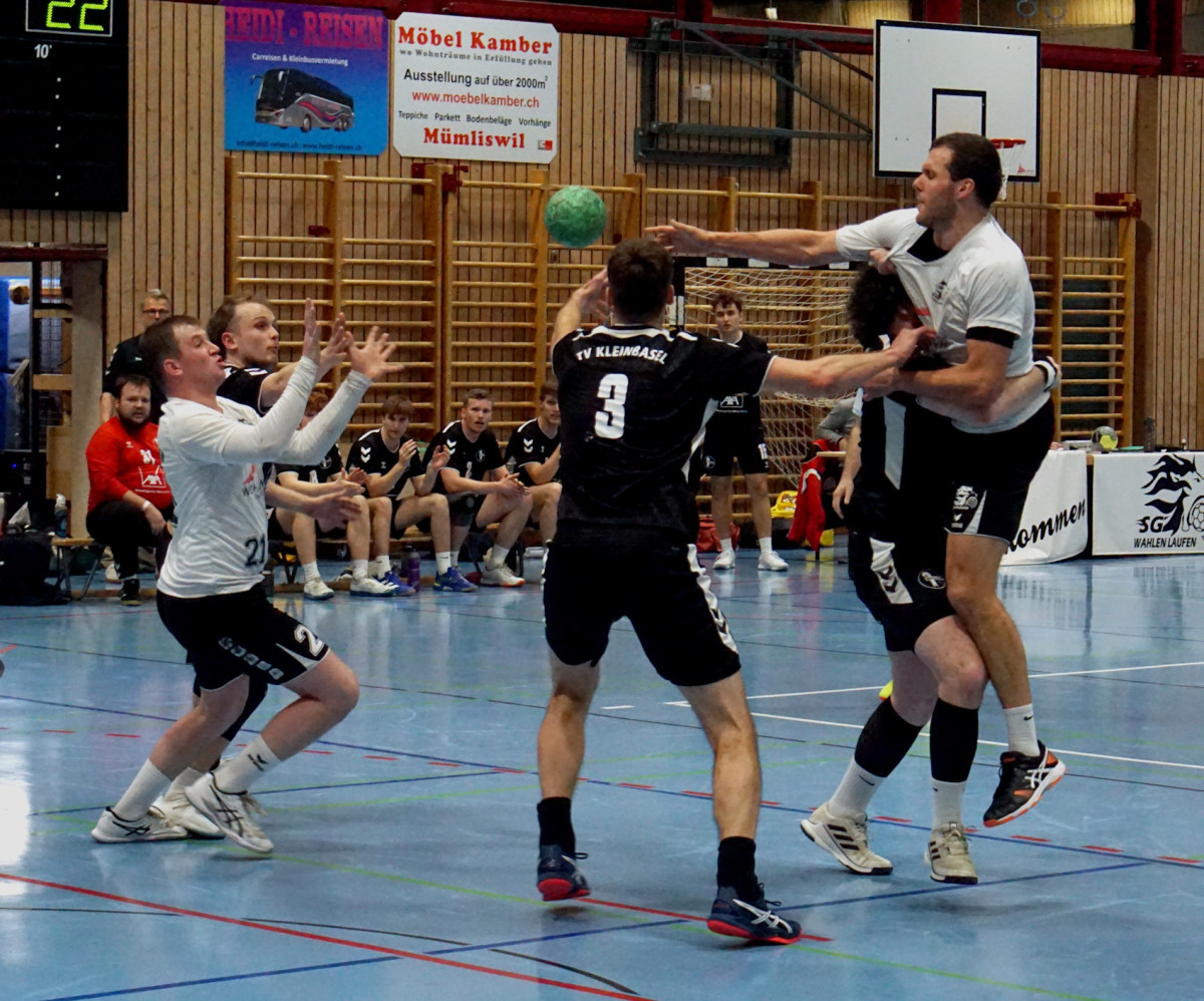 Mit einer enttäuschenden Niederlage gegen die Kleinbasler tauchten die Laufentaler bereits zum zweiten Mal im neuen Jahr. Ja, im Team fehlen verletzungsbedingt einige wichtige Spieler. Aber dies alleine darf nicht als Entschuldigung für die doch eher enttäuschende Leistung, sowohl in der Abwehr, wie auch im Angriff, herangezogen werden. Wiederum brauchte man in der ersten Spielhälfte 20 Minuten, bis die Abwehr einigermassen stabil und aggressiv funktionierte. Da lagen die Gastgeber aber schon mit 6 Toren im Hintertreffen. Auch stellten die Städter mit einer offenen Verteidigung die Laufentaler vor grössere Probleme. Hier wären Einzelleistungen, sowohl läuferisch wie auch kämpferisch gefragt gewesen. Immerhin kam man bis zur Pause wieder auf 3 Tore heran. Die zweite Spielhälfte konnten die Gastgeber etwas ausgeglichener gestalten. Aber man lag ab der 3. Spielminute resultatmässig immer im Rückstand. Dazu leistete man sich noch den Luxus drei Siebenmeter zu verschiessen. So können einfach Spiele in der Tabellenmitte nicht gewonnen werden. Nach dieser Niederlage fällt die SG Wahlen Laufen auf den 6. Tabellenrang zurück. Nächste Herausforderung ist der Regio-Cup ¼-Final gegen den Zweitligisten TV Magden. Wollen die Laufentaler in den Cup Halbfinal, braucht es in dieser Begegnung eine gröbere Steigerung auf allen Positionen.